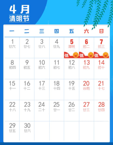 根據國務院關于2019年法定節假日放假安排,福建中凱檢測有限公司清明節放假安排通知如下:2019年清明節放假3天,即4月5日至4月7日放假,4月8日(周一)正常上班。