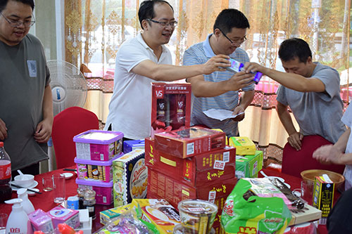 進(jìn)入現(xiàn)場琳瑯滿目的博餅禮品引人注目