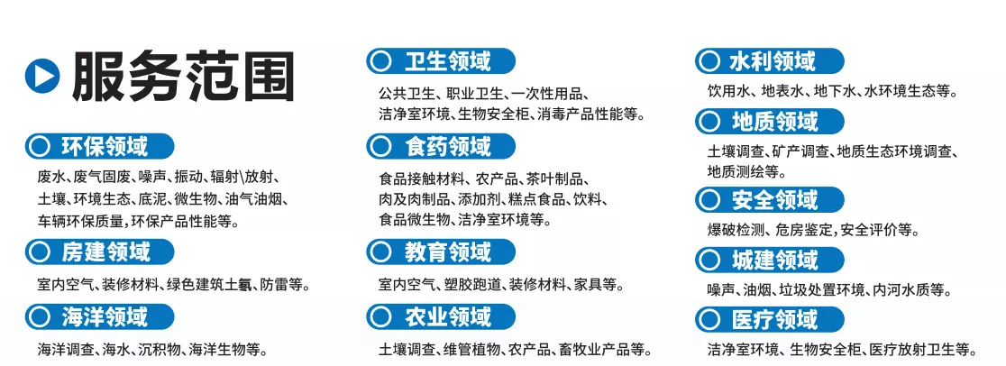 中凱檢測本著服務(wù)社會、服務(wù)人民,向社會各界提供客觀公正、正確可靠的檢測數(shù)據(jù),秉承“公正,科學(xué),準(zhǔn)確,高效”的服務(wù)理念,“客戶至上,服務(wù)至上”的經(jīng)營理念,以科學(xué)嚴(yán)謹(jǐn)、精益求精、務(wù)實求真作為質(zhì)量方針,向不同的客戶群體提供優(yōu)質(zhì)、精準(zhǔn)和高效的服務(wù)。