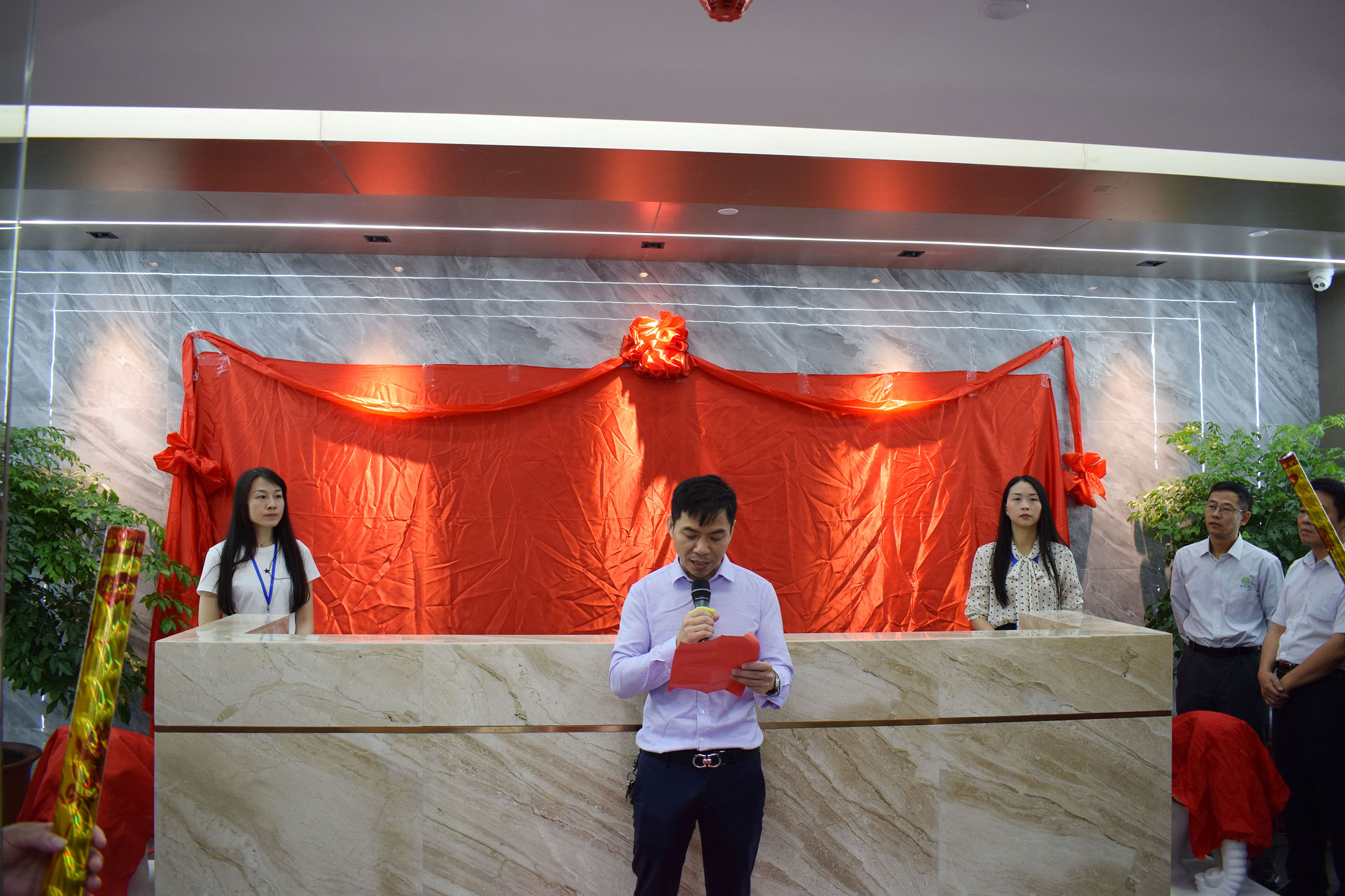 喬遷慶典儀式在福建中凱檢測食品部劉總的主持下進行,集團董事長林立文先生及特邀嘉賓為新址揭牌,吉象揭彩。