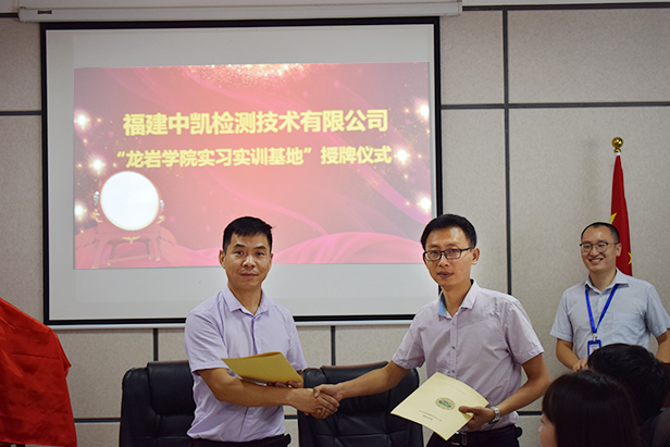 福建中凱檢測技術有限公司舉行“龍巖學院實習實訓基地”授牌儀式